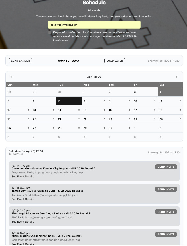 The real technical breakthrough occurs at the point of interaction, where a traditional add to calendar link is replaced by a REST API-generated “Send Calendar Invite” button that is embedded into the schedule page for each game displayed.