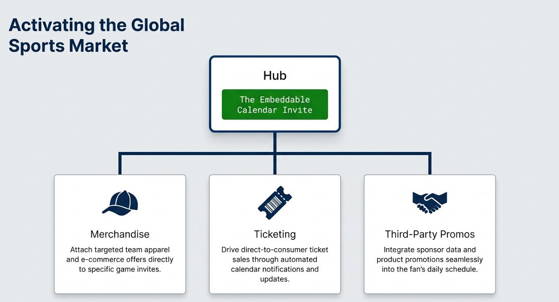 We see this as a messaging pipeline for building interactive web schedules and driving fan engagement through the embedded one-click calendar invite.