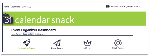 1. The Upcoming Landing Page- streams all future events from your Calendarsnack account and has an integrated 1-Click RSVP button that sends a calendar invite for each one from the web page.