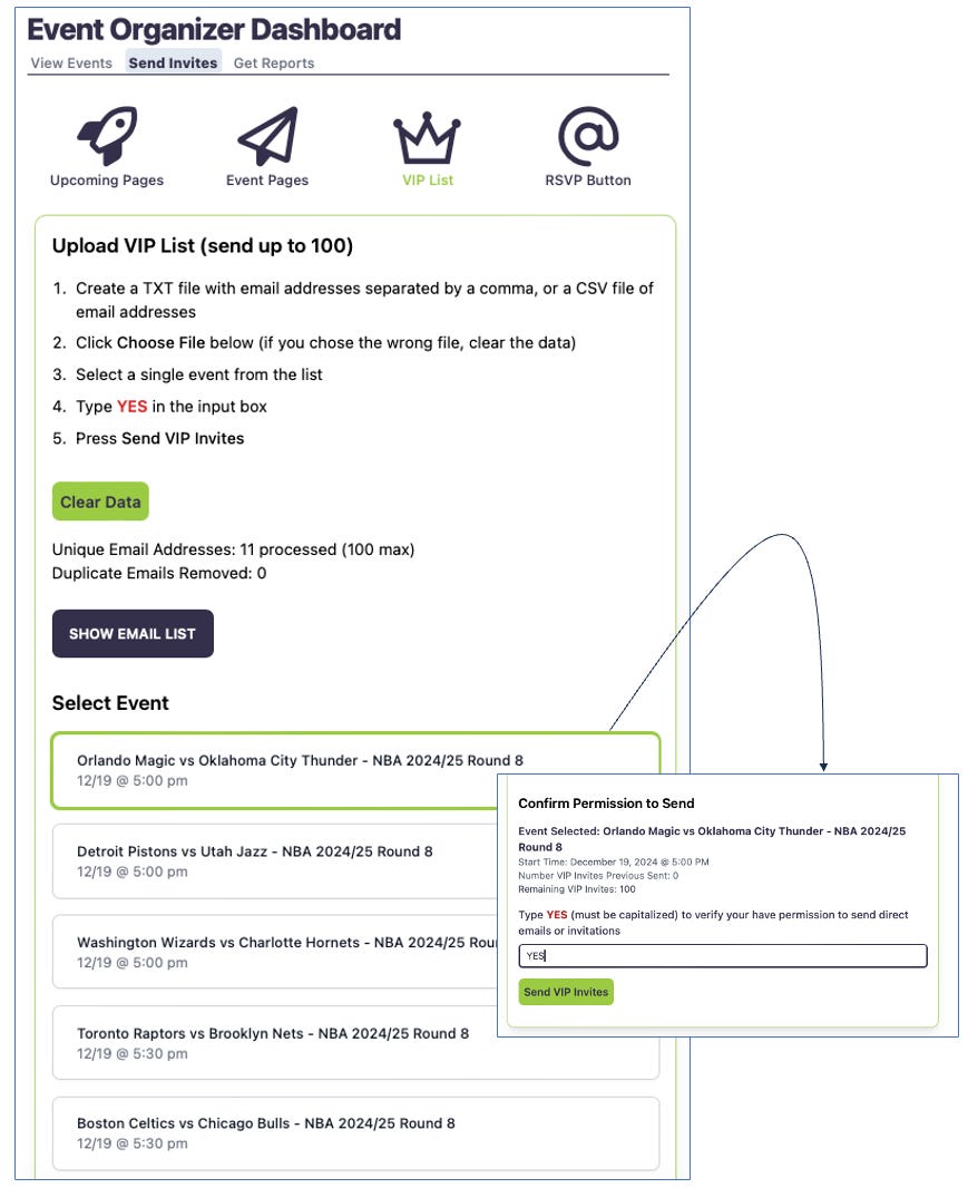 3. VIP Lists (BULK)—Sending a Single Calendar Invite from a Picker to an uploaded TXT file email Bulk List.