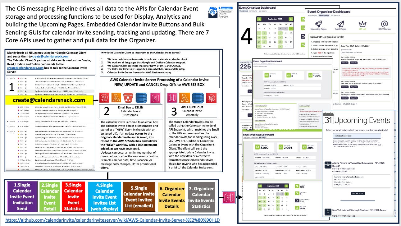 In all scenarios, the Calendar Invite End Point API is called, matching the event's unique ID (UID) to the email, assembling the invite, and sending it.