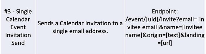 API #3 is the Calendar Invite Send API. This API is used for all Calendar Invite Sending by calling Lambda #2.