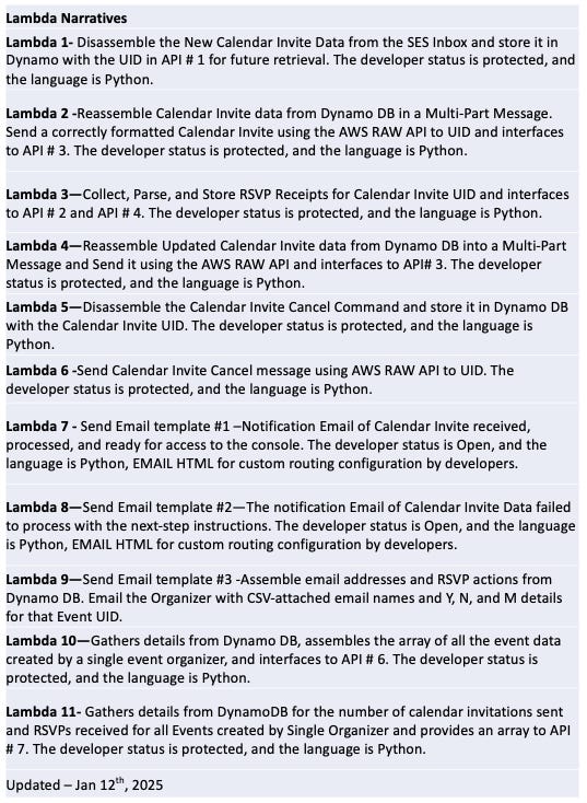 Lambda #2 is the workhorse for all Calendar Invite Sending and is directly connected to API#3.