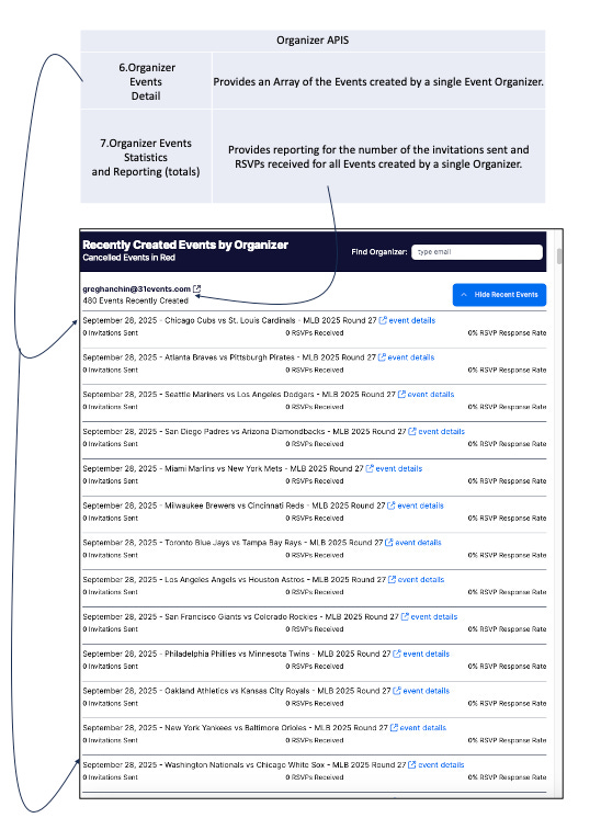 These are the 7 APIs that drive the data for the Organizer Dashboards.