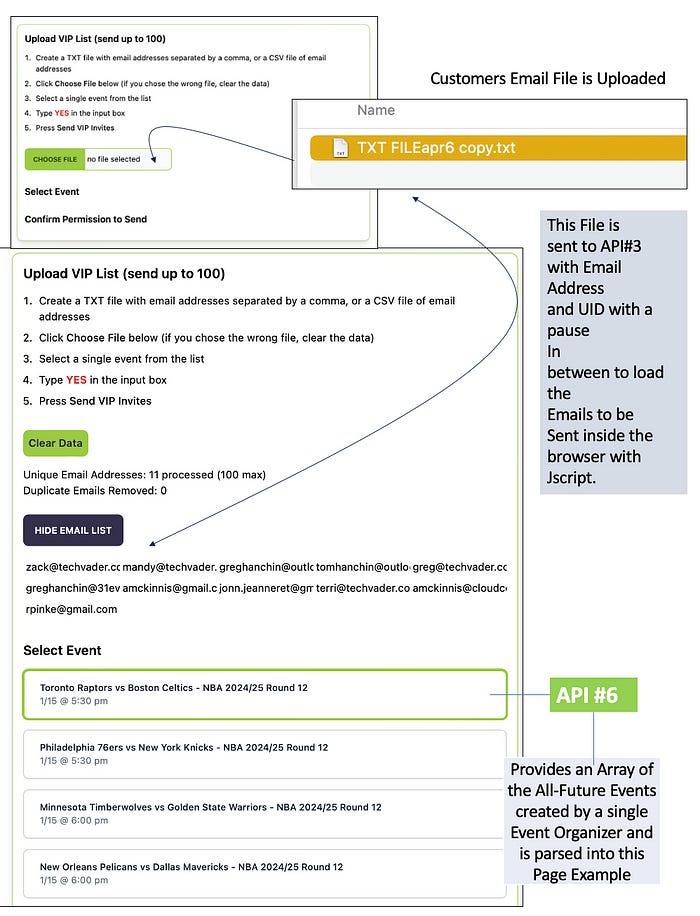 This part of the GUI stitches together the ability to select a calendar invite from the AWS database, select it in the picker, and give it a command to send the calendar invite by issuing API #3 a greenlight by typing in the “YES” command in the picker.
