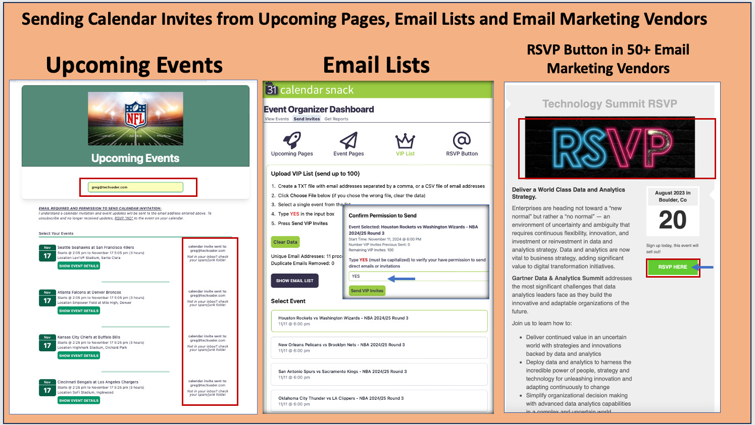 It's easy and consistent. The screenshot below for the NBA is an example: send it to a create@calendarsnack.com mailbox we set up to ETL data into the Calendar Invite Server.