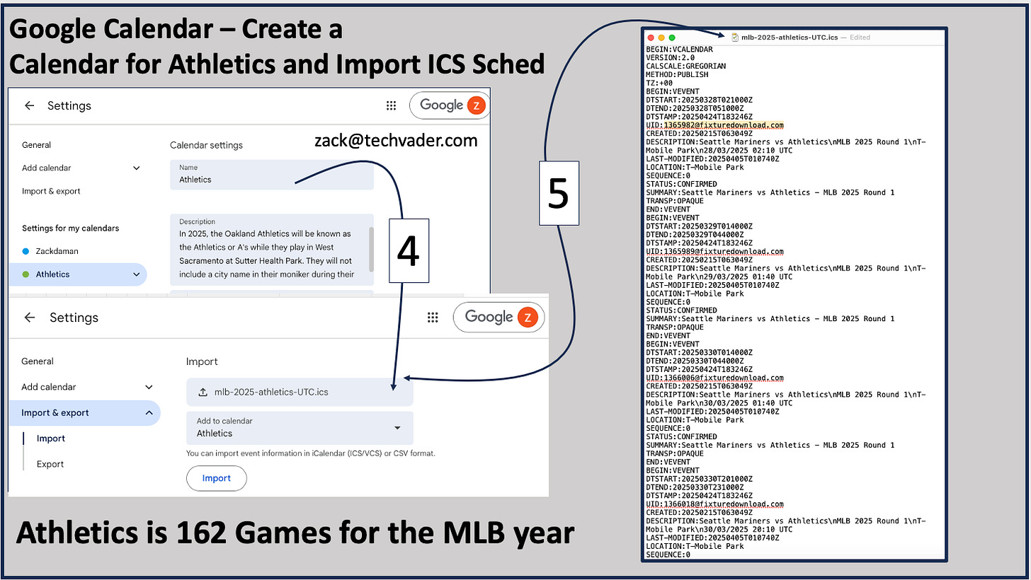 In this example, we separated the Athletics Calendar into a separate name for the 162 MLB Games.