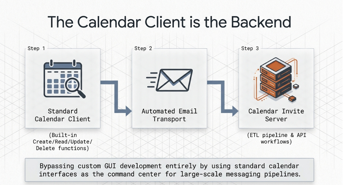 The “Calendar Invite Server” (CIS) flips this paradigm by using the Calendar Client for CRUD.