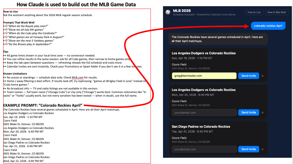 We also include our starter kit for using Claude to build custom game calendars, featuring one-click calendar invites with simple prompting.
