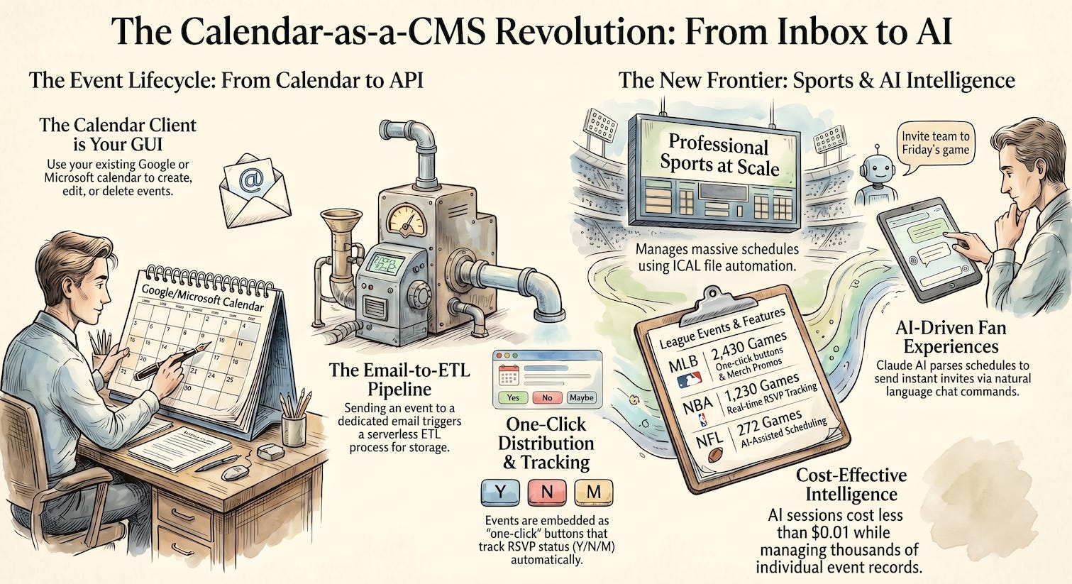 As we move toward a future of automated scheduling, the question for developers and strategists remains: Why build another dashboard when your calendar client is already the world’s most ubiquitous Content Management System for events?