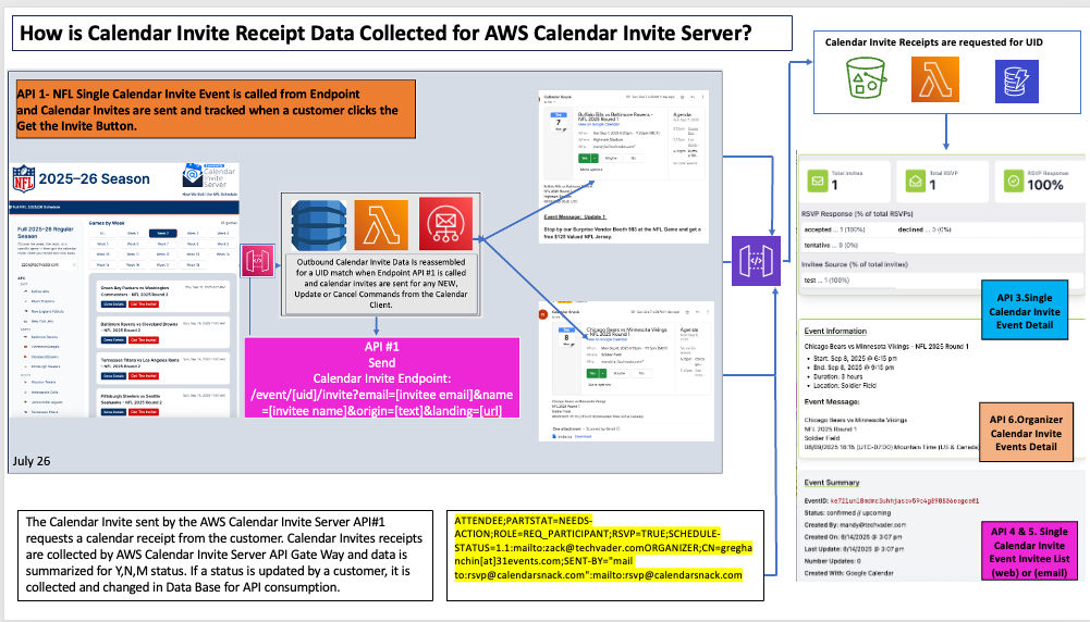 Managing and distributing calendar invitations at scale presents a significant operational challenge, requiring a system that is both robust and highly elastic. This whitepaper provides a comprehensive technical breakdown of the Calendar Invite Server for AWS, a serverless solution explicitly designed to address this challenge. The system is architected to handle high volumes of calendar data with efficiency and reliability.