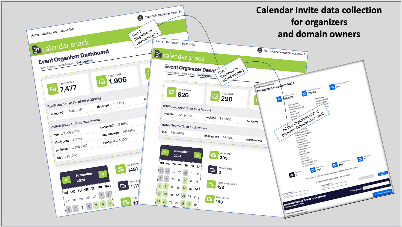 The Calendar Invite Server APIs and Functions collect and store Calendar Invite Receipt Data in the AWS storage layer from any Calendar Invites sent on the AWS SES account.