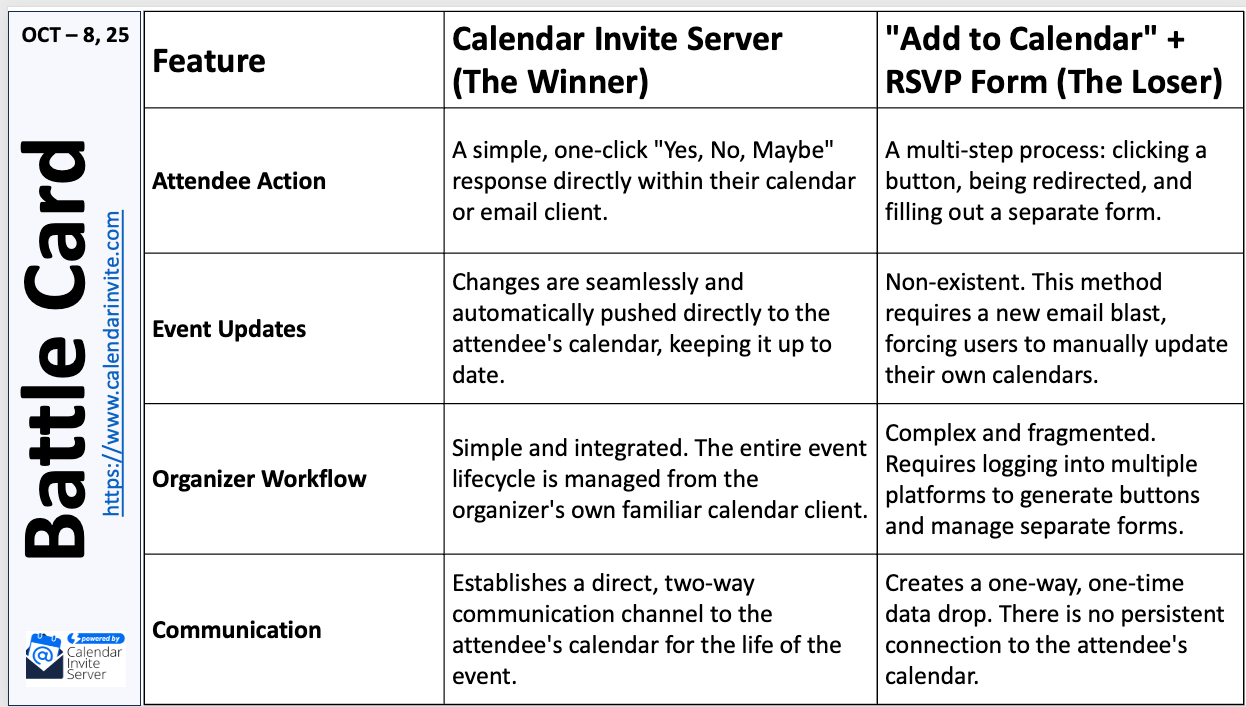 Why using the Calendar Invite Server is better for domains and Brands than Add to Calendar + RSVP Form.