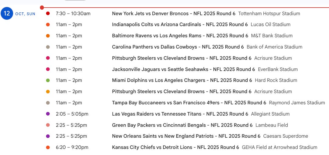 Alternatively, he may be an NFL fan interested in specific games and will enjoy the engagement of selecting and sending a calendar invite using Mandy’s Game Schedule.
