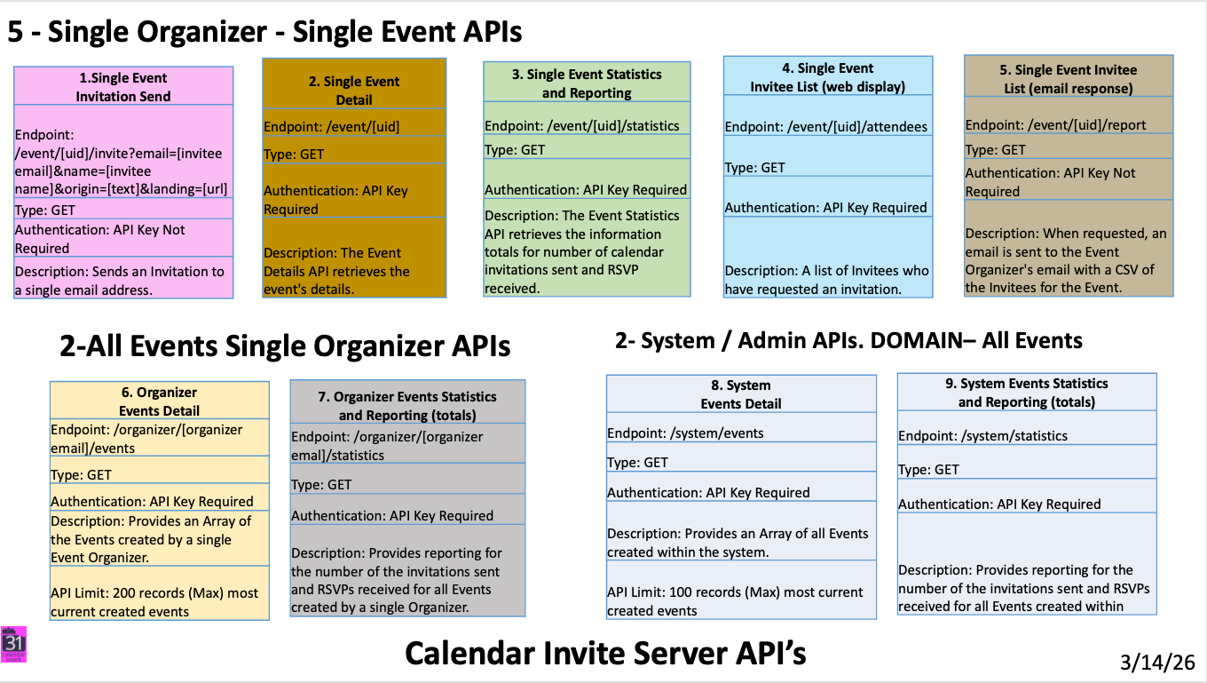 That is a total of 9 APIS for Organizer and Domain owners to gather calendar invite data.