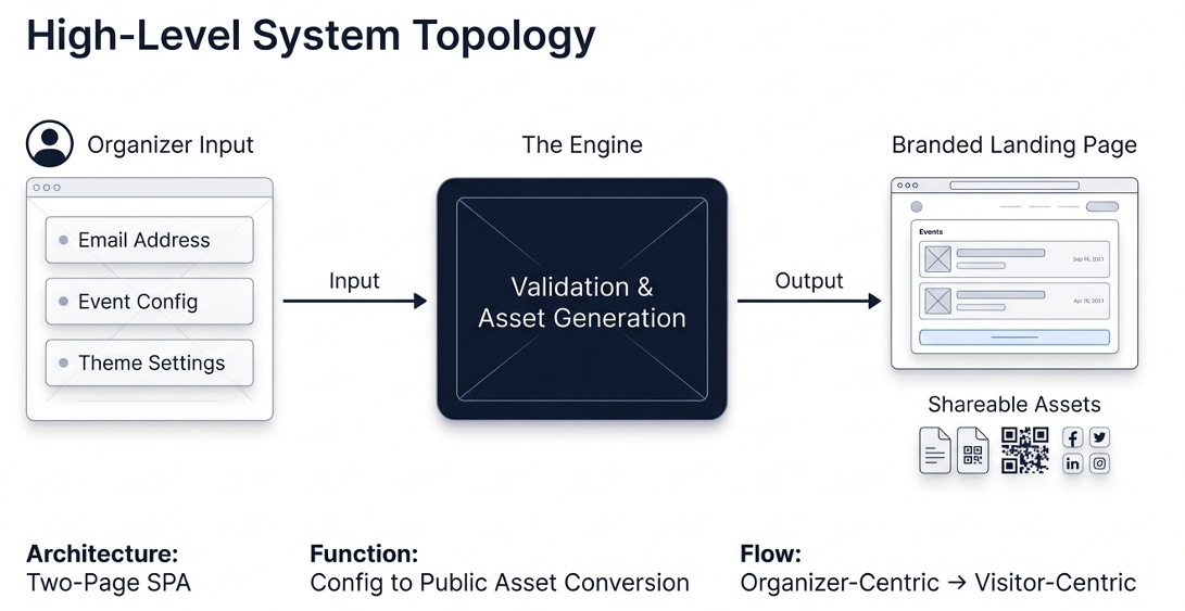This takes the user to the Upcoming Events Landing Page, where the data is already in place to stylize colors, format content, and generate shareable social assets.