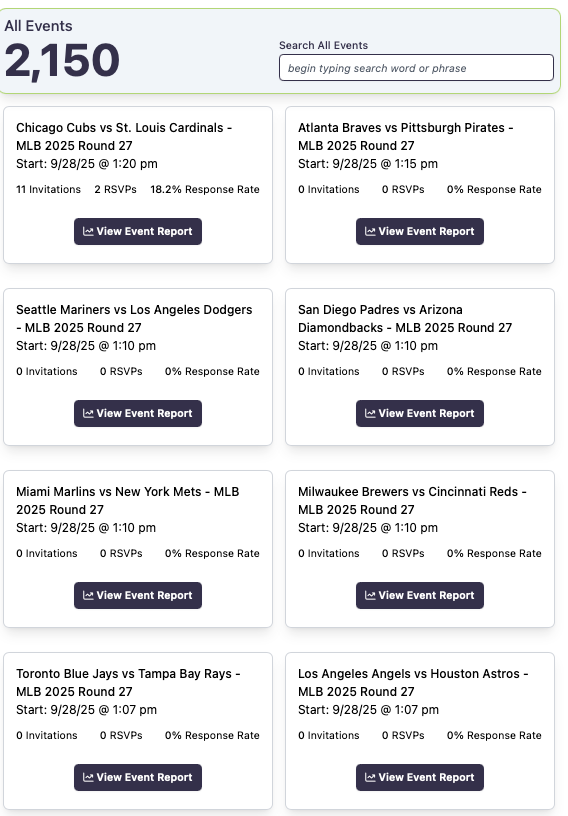 This page calls all Upcoming Event data from the AWS Calendar Invite Server stored under the Organizer for future events and streams them to this page for 1 Click Calendar Invite Sending with API#1 Embedded.