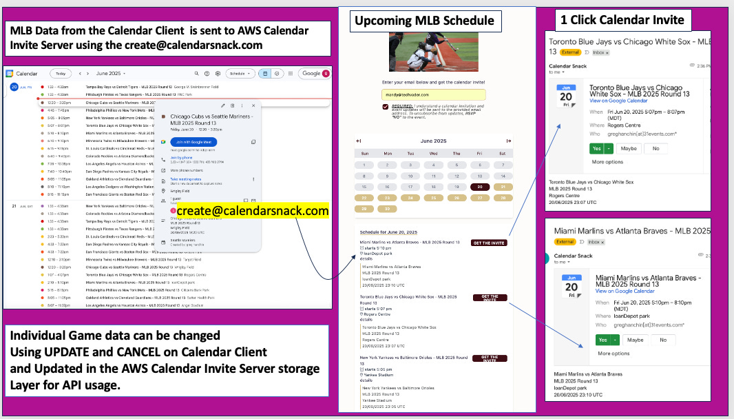 Snapshots for MLB, NBA, and NFL using the AWS Calendar Invite Server