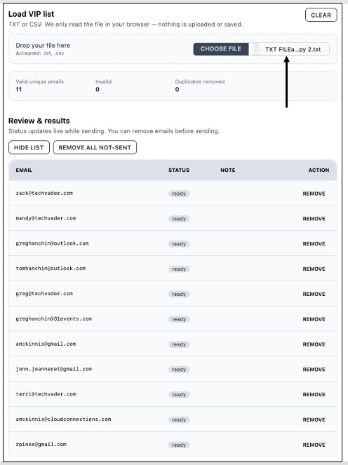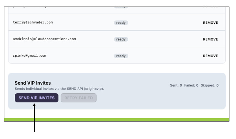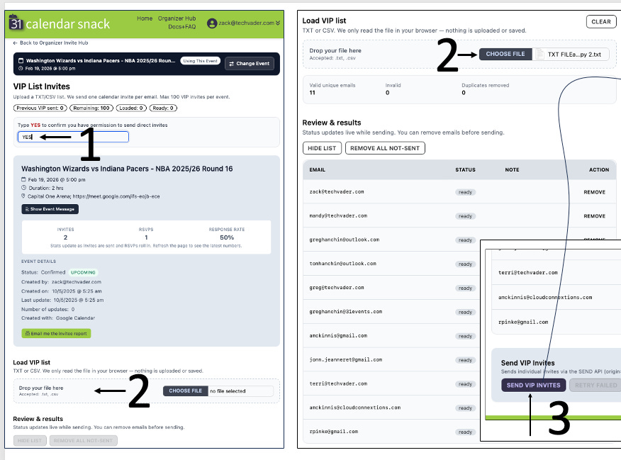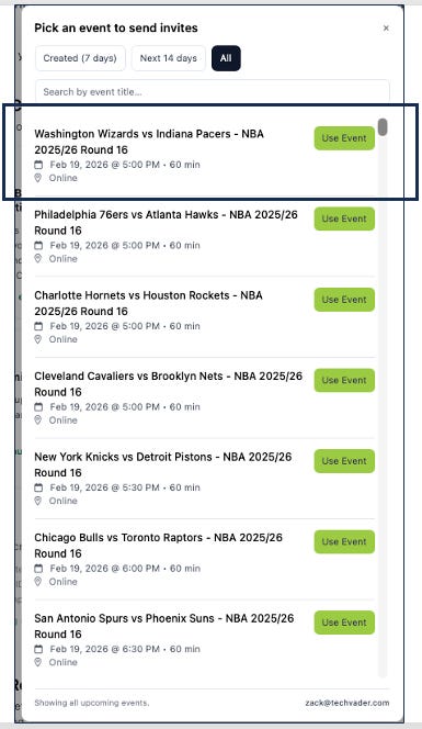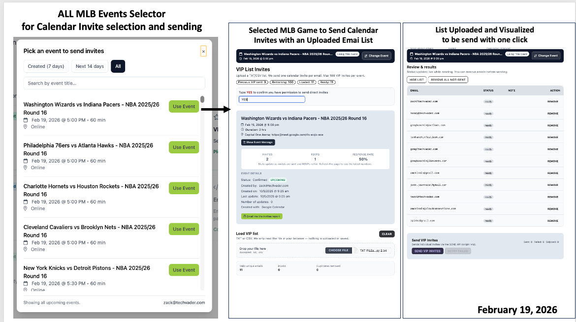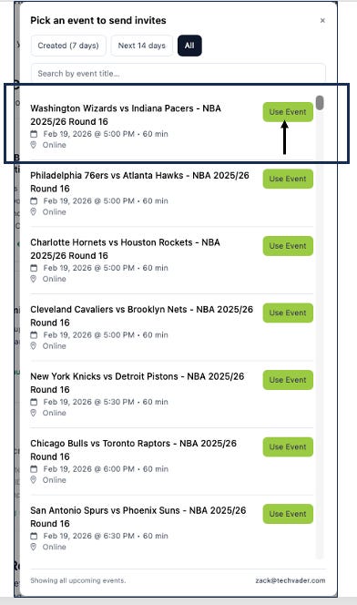 Step 1. Pick the Event from the VIP List Interface, also known as BULK Sending of Calendar Invites to an authorized list.
