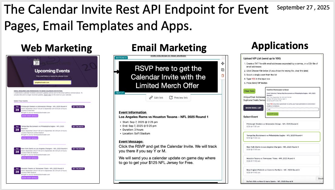 The Calendar Invite Server replaces this failed system with a native, API-driven messaging pipeline, transforming every attendee’s calendar into an owned, persistent communication channel and unlocking a new standard for event-driven marketing.