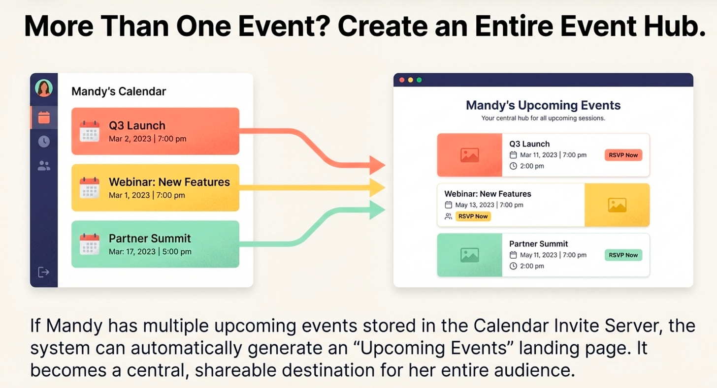 What if you could orchestrate all of that—from generating a branded landing page to sending automated, intelligent updates—just by creating a single event in your regular calendar?
